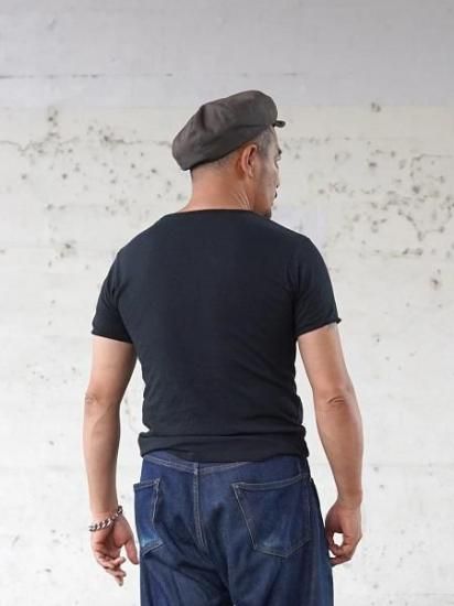 糸を厳選して丸編み機作り上げた凹凸感のある生地を、新型の形で仕込み完成したアメリカンビンテージスタイルのTシャツになります。
